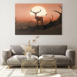 Impression sur verre - Image sur verre - Silhouette d'un cerf sur fond de grande lune entourée de branches - 120x80cm - Cette nuit ne ressemble à aucune autre - Décoration murale moderne pour le salon et la chambre ARTTOR
