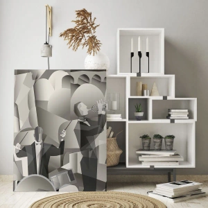 Impression sur verre - Image sur verre - Scène de groupe de jazz stylisée dans des tons monochromes - 50x70cm - Dans l'espace des sons - Décoration murale moderne pour le salon et la chambre ARTTOR