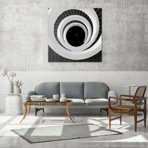 Impression sur verre - Image sur verre - Escalier en colimaçon noir et blanc vu d'en haut - 70x50cm - Les choses concrêtes - Décoration murale moderne pour le salon et la chambre ARTTOR