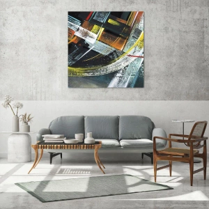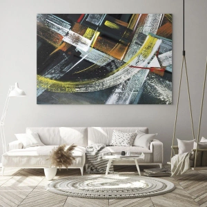 Impression sur verre - Image sur verre - Abstraction dynamique avec des coups de pinceau colorés - 50x70cm - L'énergie du mouvement - Décoration murale moderne pour le salon et la chambre ARTTOR