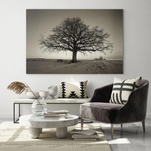 Impression sur verre - Image sur verre - Un arbre solitaire dans un paysage monochrome - 50x70cm - D'ici à l'éternité - Décoration murale moderne pour le salon et la chambre ARTTOR