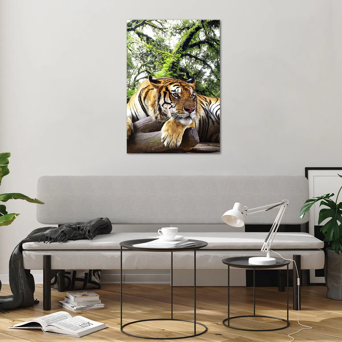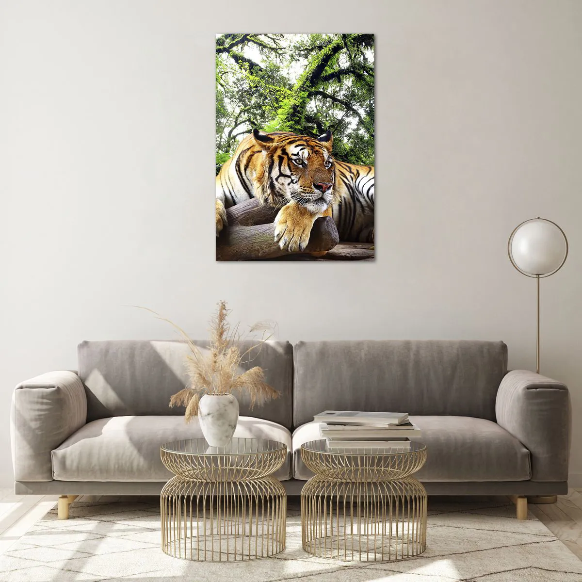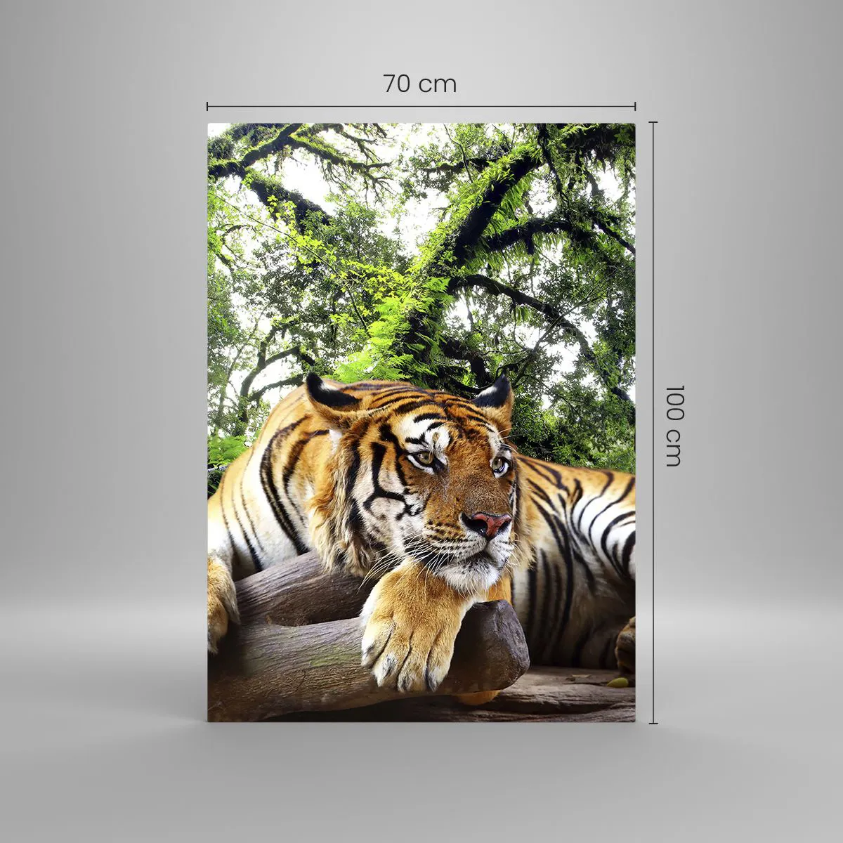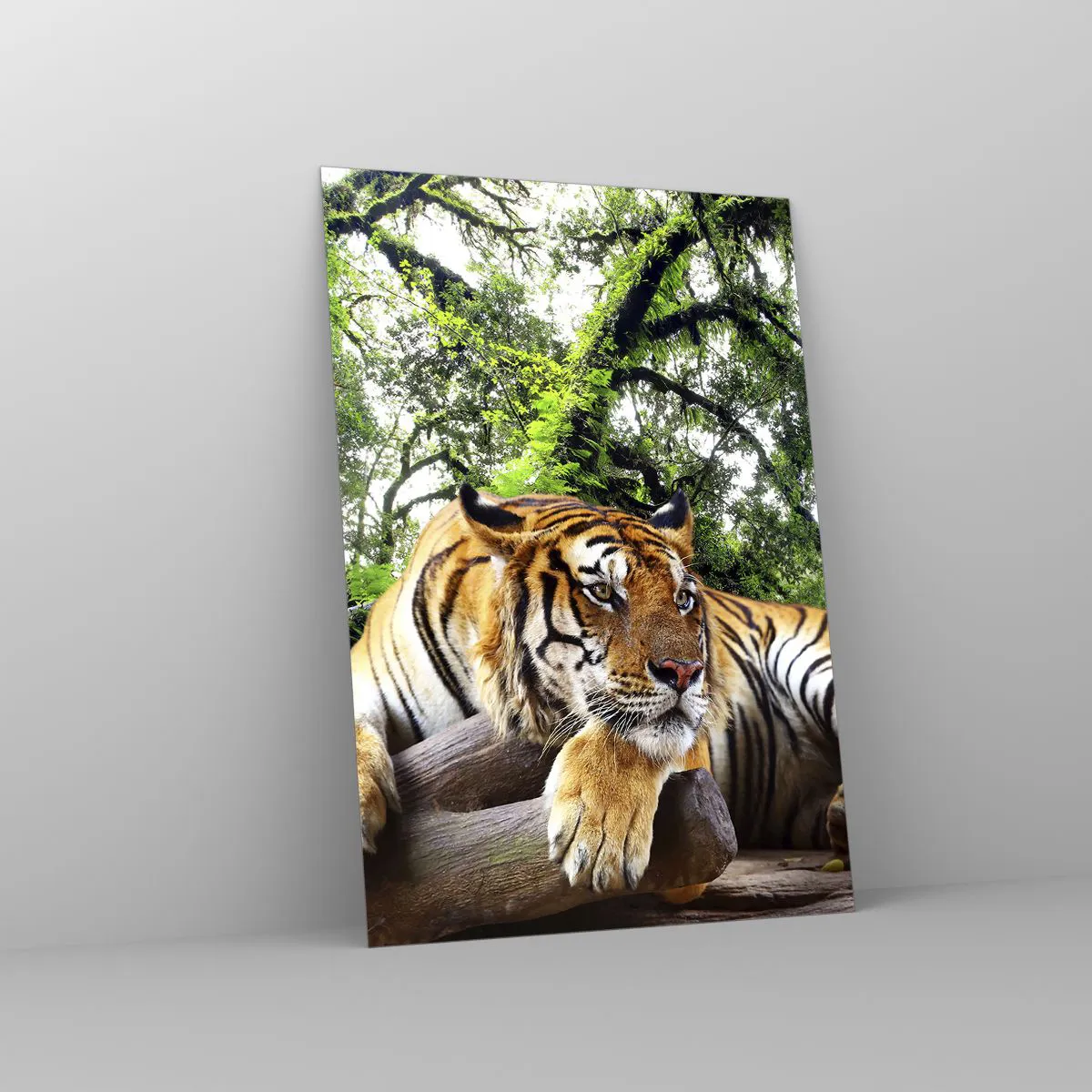 Impression sur verre - Image sur verre - Un tigre se reposant dans une forêt tropicale - 70x100cm - Cordialement - Décoration murale moderne pour le salon et la chambre ARTTOR