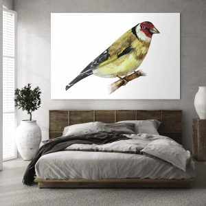 Impression sur verre - Image sur verre - Oiseau aquarelle sur une branche aux couleurs délicates - 100x70cm - Portrait d'oiseau - Décoration murale moderne pour le salon et la chambre ARTTOR