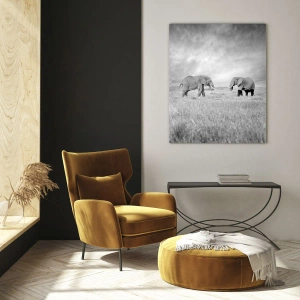 Décoration murale - Gray is Beautiful - Deux éléphants dans la savane en noir et blanc