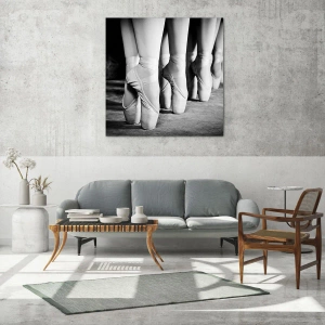 Impression sur verre - Image sur verre - Photo en noir et blanc des chaussures de ballet des danseurs - 80x120cm - Ensemble, simple - Décoration murale moderne pour le salon et la chambre ARTTOR