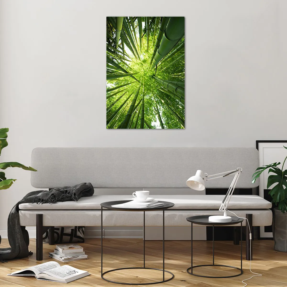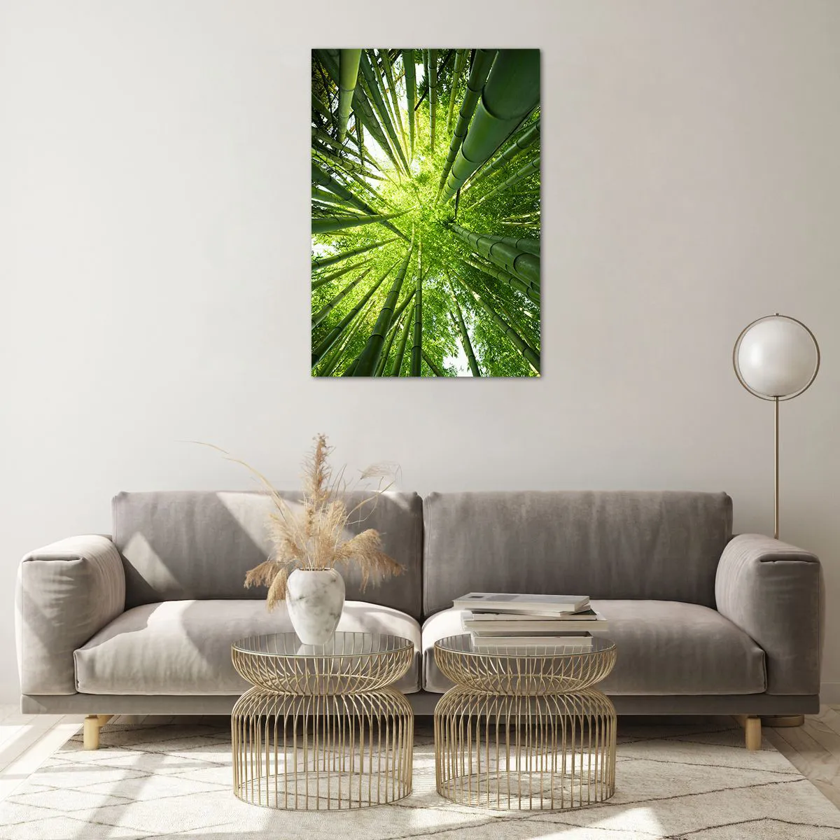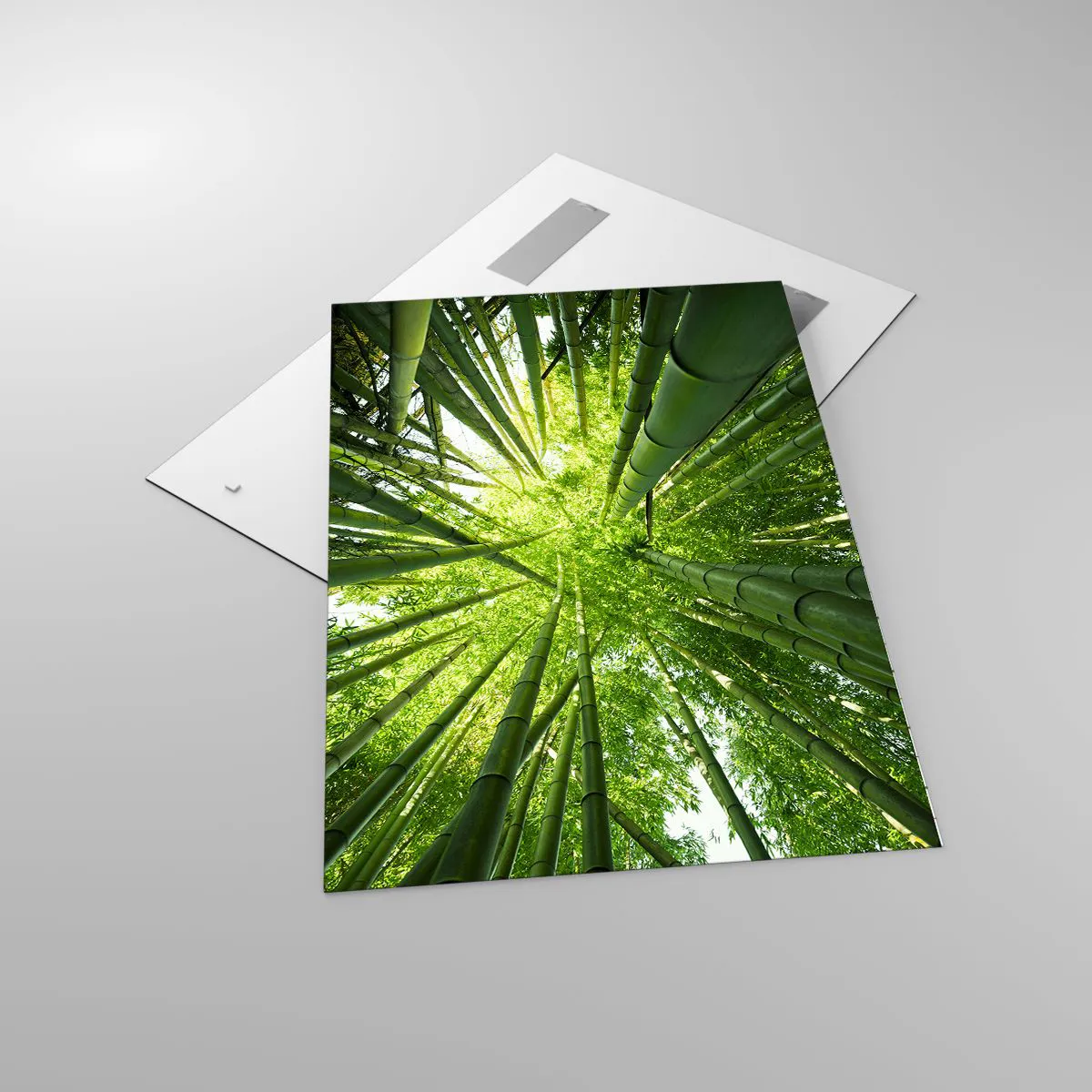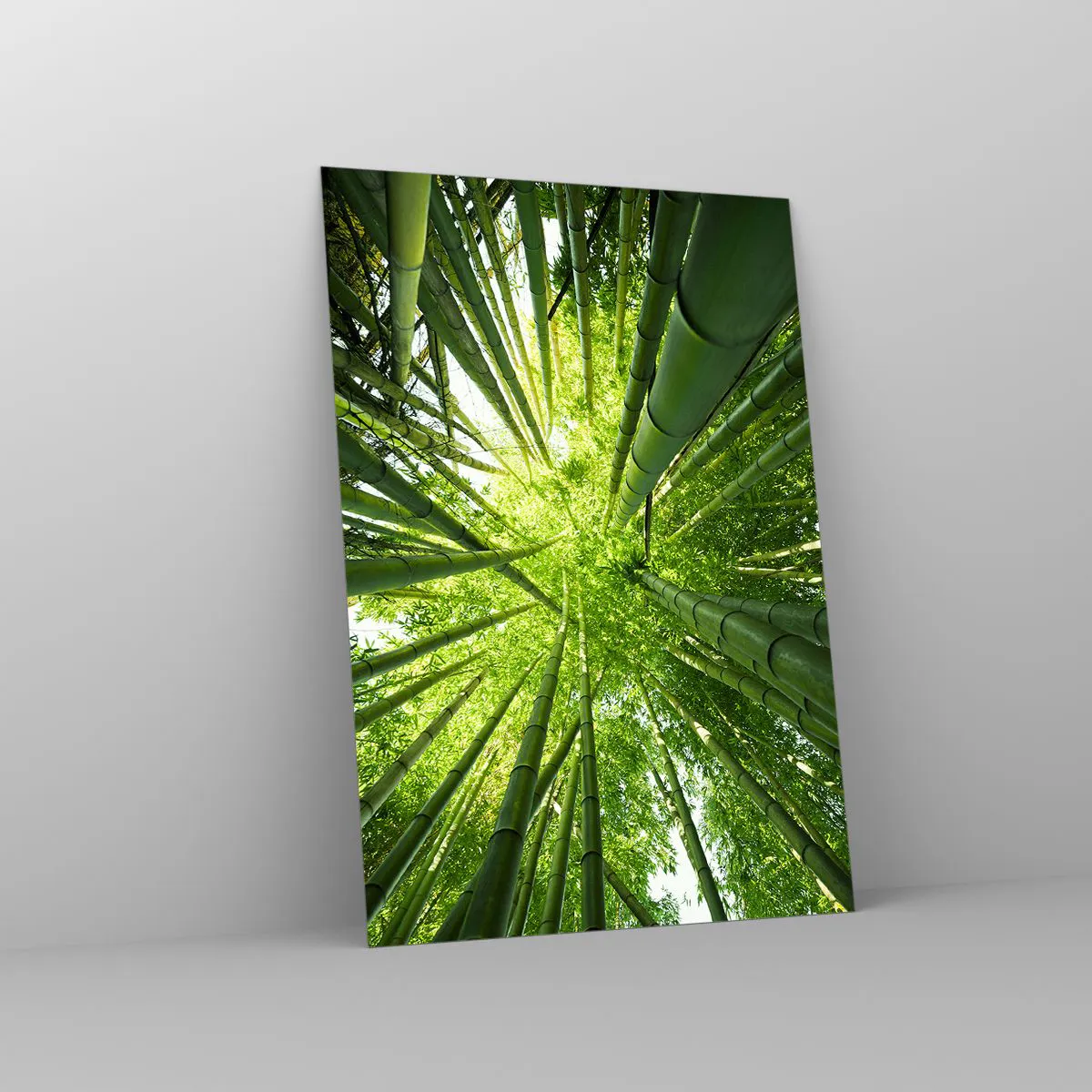 Impression sur verre - Image sur verre - Vue à travers une bambouseraie verte - 70x100cm - Dans une bambouseraie - Décoration murale moderne pour le salon et la chambre ARTTOR