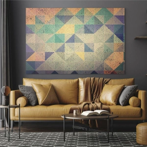 Impression sur verre - Image sur verre - Une composition colorée de triangles géométriques dans des tons pastel. - 70x100cm - République des triangles - Décoration murale moderne pour le salon et la chambre ARTTOR