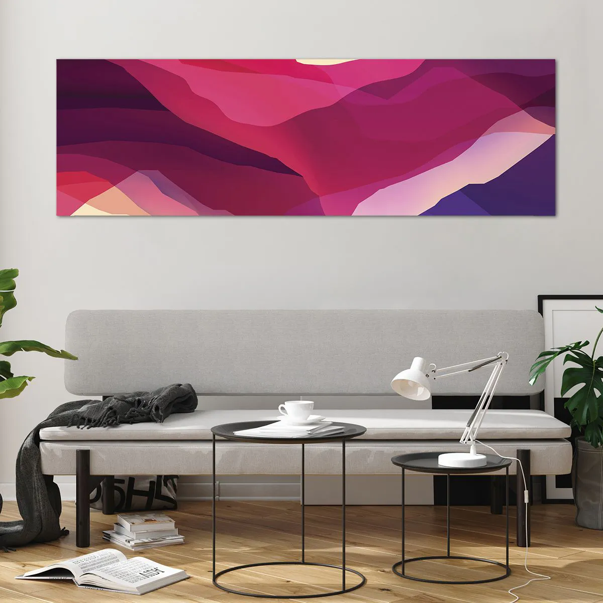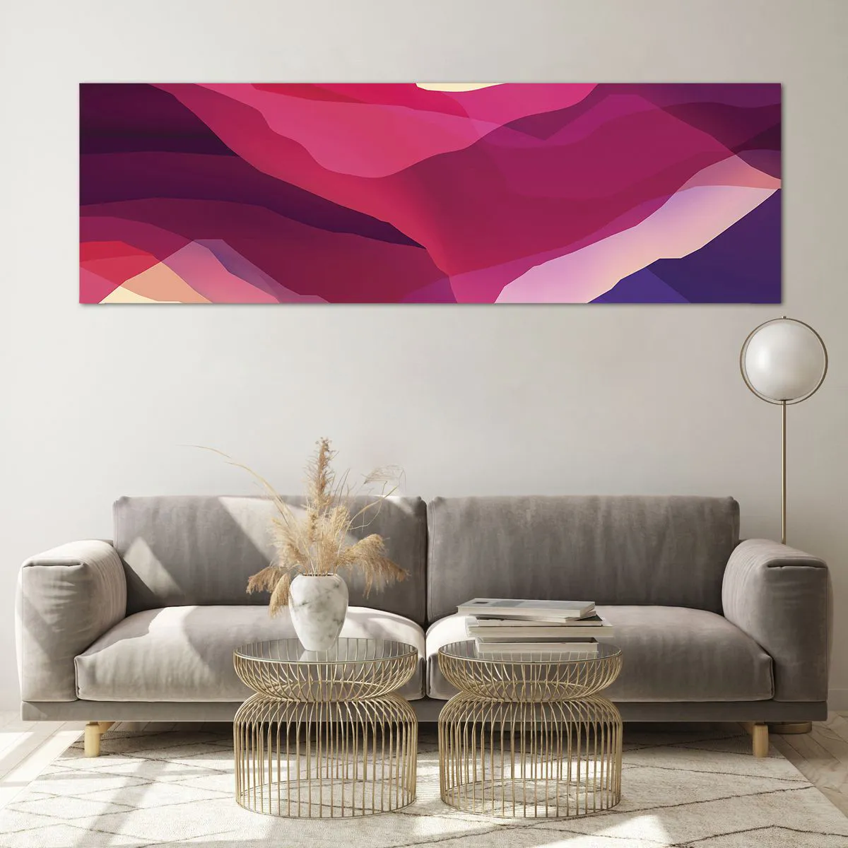 Impression sur verre - Image sur verre - Vagues abstraites dans des tons violets et roses sur un fond clair - 160x50cm - Vagues pourpre - Décoration murale moderne pour le salon et la chambre ARTTOR