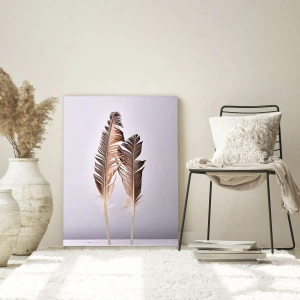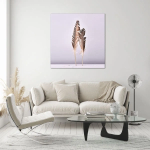Impression sur verre - Image sur verre - Deux plumes délicates sur un fond clair - 50x70cm - Face au néant - Décoration murale moderne pour le salon et la chambre ARTTOR