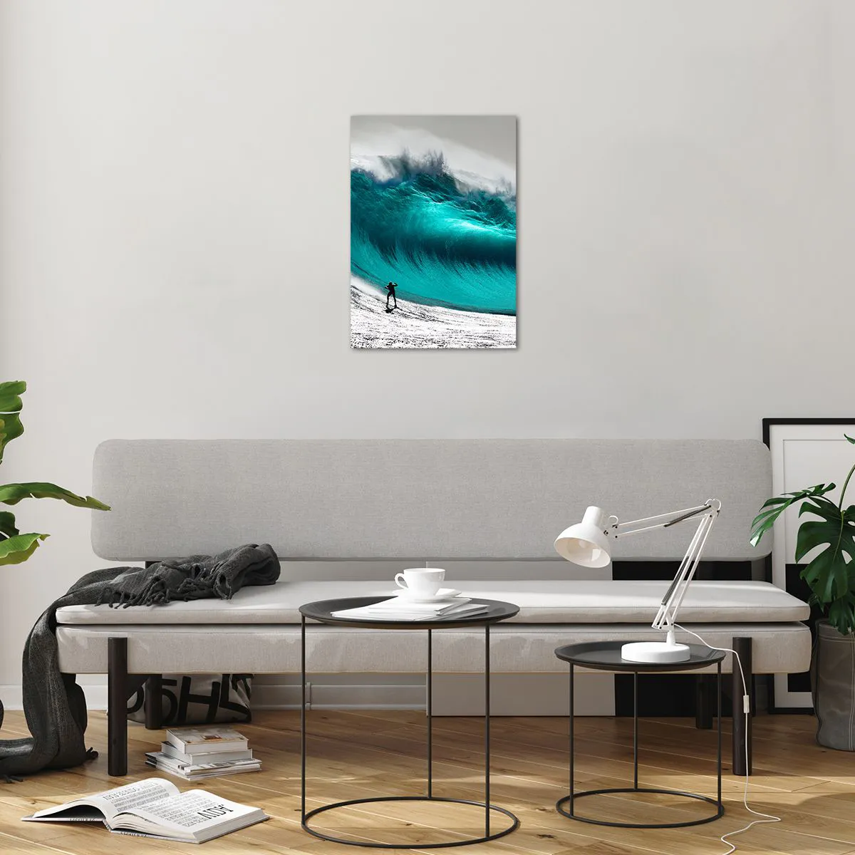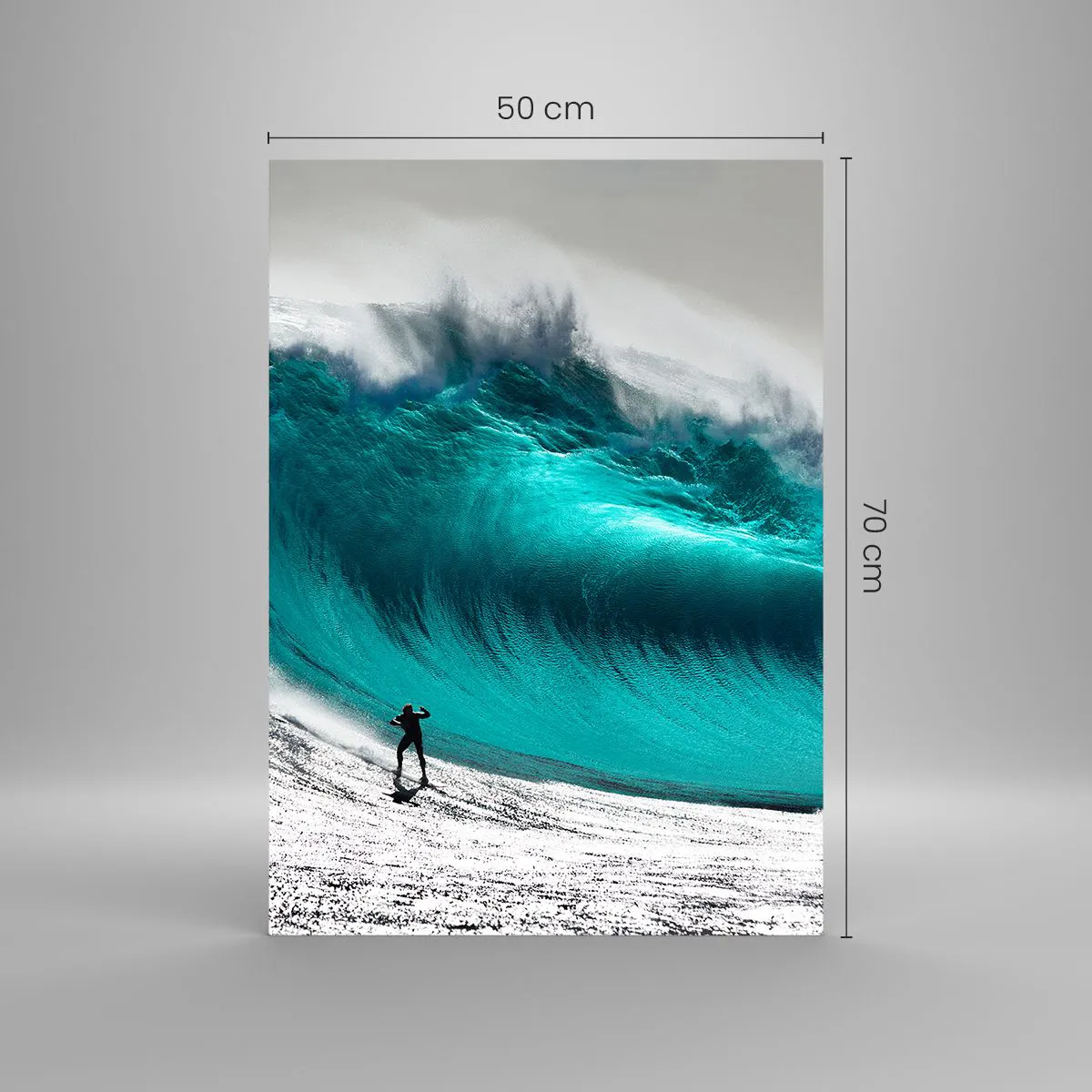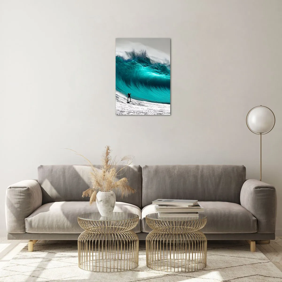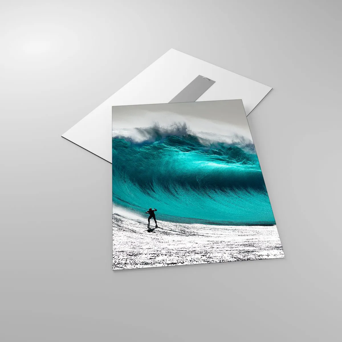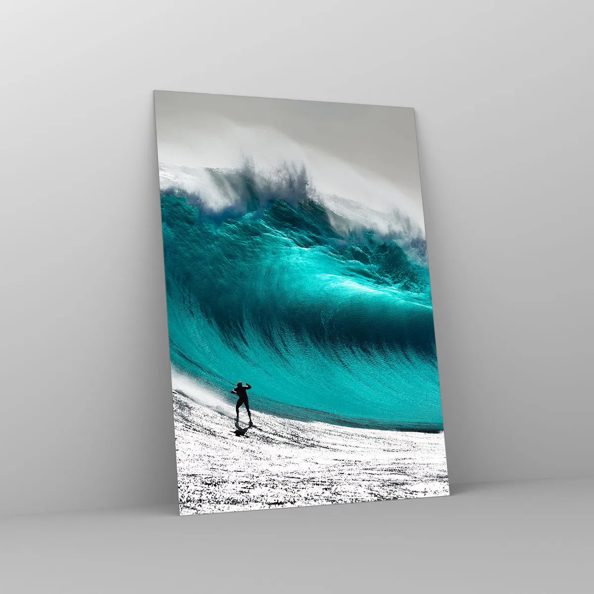 Impression sur verre - Image sur verre - Un surfeur devant une énorme vague - 50x70cm - Challenge accepté - Décoration murale moderne pour le salon et la chambre ARTTOR