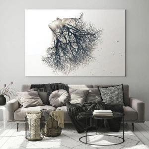 Impression sur verre - Image sur verre - Silhouette créative d'une femme et d'arbres - 70x100cm - Écouter le murmure des arbres - Décoration murale moderne pour le salon et la chambre ARTTOR