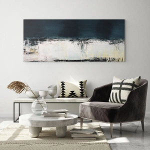 Impression sur verre - Image sur verre - Composition horizontale abstraite dans les tons bleu marine et blanc - 70x100cm - Composition horizontale - Décoration murale moderne pour le salon et la chambre ARTTOR