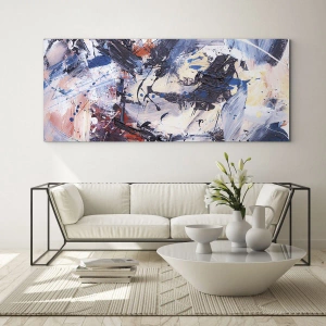 La peinture sur verre est faite sur un verre de 4 mm d'épaisseur. Les bords du verre ont une arête trapézoïdale mate. La tableau est sûr à l'utilisation et prêt à être accroché - il a des crochets en métal attachés à l'arrière du cadre et des entretoises en mousse permettant la régulation uniforme de la distance du tableau au mur.