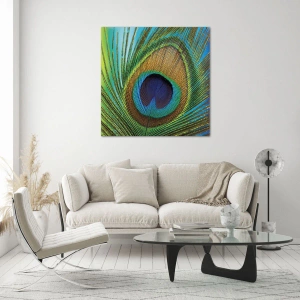 La peinture sur verre est faite sur un verre de 4 mm d'épaisseur. Les bords du verre ont une arête trapézoïdale mate. La tableau est sûr à l'utilisation et prêt à être accroché - il a des crochets en métal attachés à l'arrière du cadre et des entretoises en mousse permettant la régulation uniforme de la distance du tableau au mur.