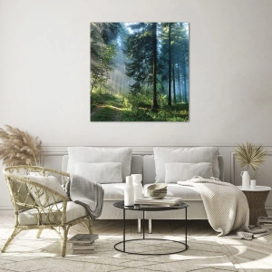 Impression sur verre - Image sur verre - Un chemin forestier illuminé par les rayons du soleil du matin - 80x120cm - Rayonnant le matin - Décoration murale moderne pour le salon et la chambre ARTTOR