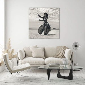 Impression sur verre - Image sur verre - Photographie en noir et blanc d'une danseuse dans le désert - 120x80cm - Danse des îles du sud - Décoration murale moderne pour le salon et la chambre ARTTOR