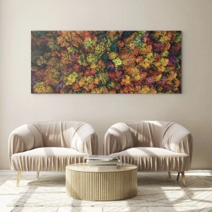 Impression sur verre - Image sur verre - Couronnes d'arbres colorées dans la palette d'automne - 140x50cm - Bouquet d'arbres automnal - Décoration murale moderne pour le salon et la chambre ARTTOR
