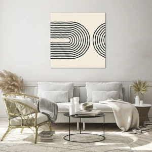 Impression sur verre - Image sur verre - Une peinture abstraite en noir et blanc représentant des lignes en forme d'arc. - 70x50cm - Dans un instant... - Décoration murale moderne pour le salon et la chambre ARTTOR