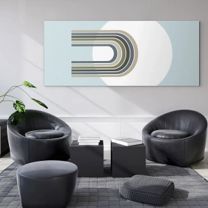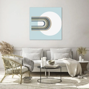 Impression sur verre - Image sur verre - Une composition minimaliste avec un cercle et des lignes sur un fond pastel. - 70x100cm - Attraction irrésistible - Décoration murale moderne pour le salon et la chambre ARTTOR