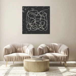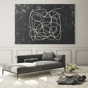 Impression sur verre - Image sur verre - Ligne abstraite en forme d'enchevêtrement sur un fond noir texturé - 50x70cm - Errance des pensées - Décoration murale moderne pour le salon et la chambre ARTTOR