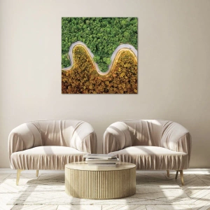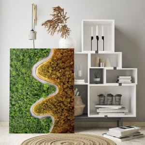 Impression sur verre - Image sur verre - Une route sinueuse à travers la forêt vue à vol d'oiseau - 80x120cm - Frontieres et differences - Décoration murale moderne pour le salon et la chambre ARTTOR