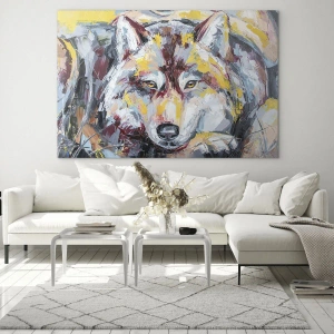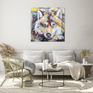 Impression sur verre - Image sur verre - Portrait coloré d'un loup dans le style expressionniste - 50x70cm - En paix au milieu des siens - Décoration murale moderne pour le salon et la chambre ARTTOR