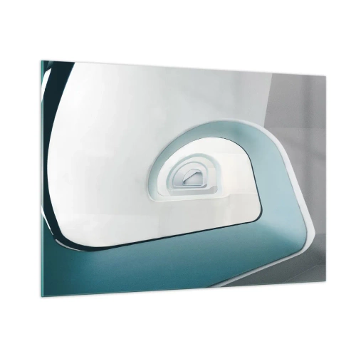 Impression sur verre - Image sur verre - Un escalier moderne dans une perspective abstraite - 100x70cm - Au profondeur du bleu - Décoration murale moderne pour le salon et la chambre ARTTOR
