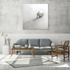 Impression sur verre - Image sur verre - Une figure minimaliste avec une balle sur un fond clair et monochrome. - 140x50cm - Jeu de la vie - Décoration murale moderne pour le salon et la chambre ARTTOR