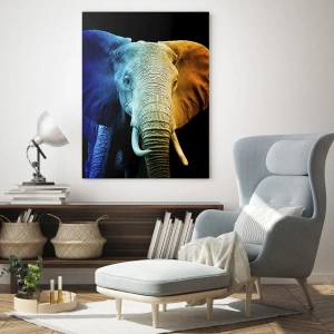 Impression sur verre - Image sur verre - Portrait coloré d'un éléphant sur fond noir - 50x70cm - Excentrique, pas bizarre - Décoration murale moderne pour le salon et la chambre ARTTOR