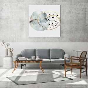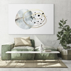 Impression sur verre - Image sur verre - Abstraction minimaliste avec un motif géométrique et des lignes dorées - 70x100cm - Emmêlement de l'espace - Décoration murale moderne pour le salon et la chambre ARTTOR