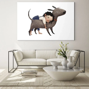 Impression sur verre - Image sur verre - Une fille serrant un gros chien dans ses bras sur un fond blanc - 100x70cm - Les meilleurs amis - Décoration murale moderne pour le salon et la chambre ARTTOR