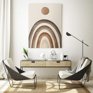 Impression sur verre - Image sur verre - Rayures et cercles abstraits dans des tons de marron - 100x70cm - Dans une galaxie lointaine - Décoration murale moderne pour le salon et la chambre ARTTOR