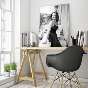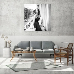 Impression sur verre - Image sur verre - Photo en noir et blanc d'une femme sur un balcon - 80x120cm - Certainement un Parisien - Décoration murale moderne pour le salon et la chambre ARTTOR