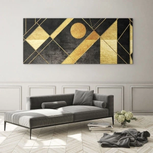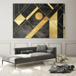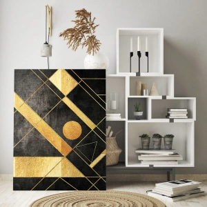 Impression sur verre - Image sur verre - Formes géométriques dans les tons or et noir - 70x100cm - Soleil du désert - Décoration murale moderne pour le salon et la chambre ARTTOR