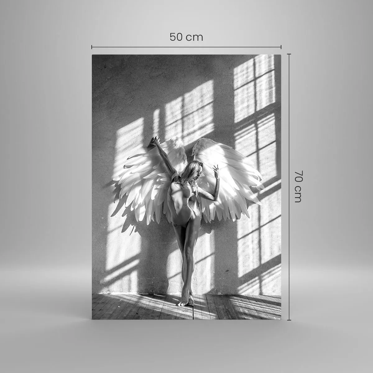 La peinture sur verre est faite sur un verre de 4 mm d'épaisseur. Les bords du verre ont une arête trapézoïdale mate. La tableau est sûr à l'utilisation et prêt à être accroché - il a des crochets en métal attachés à l'arrière du cadre et des entretoises en mousse permettant la régulation uniforme de la distance du tableau au mur.