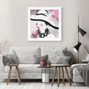 Affiche dans un cadre blanc - Poster - Portrait d'une dame en noir et rose - 50x40 cm