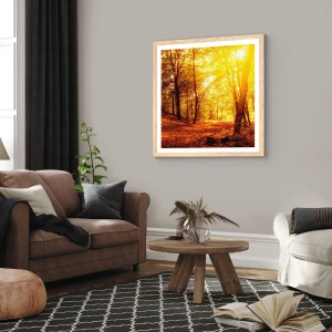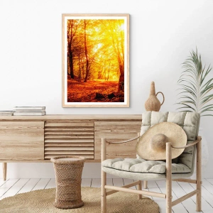 Affiche dans un chêne clair - Poster - Vers la clairière dorée - 91x61 cm