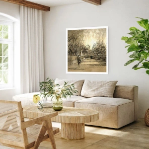 Affiche - Poster - Illustration de parc de style croquis aux tons sépia - 50x70cm - Un moment arrêté avec une plume - Décoration murale moderne pour le salon et la chambre ARTTOR