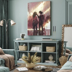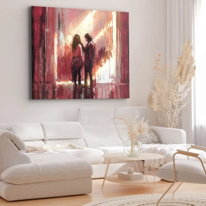 Impression sur toile - Image sur toile - Un couple debout dans une lumière chaude sur fond de motifs abstraits - 120x80cm - L'éternel spectacle de l'amour - Décoration murale moderne pour le salon et la chambre ARTTOR