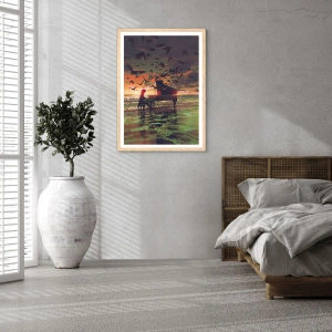 Affiche dans un chêne clair - Poster - Concert pour piano et vagues - 100x70 cm