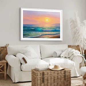 Affiche dans un cadre blanc - Poster - Le chant turquoise des vagues - 61x91 cm