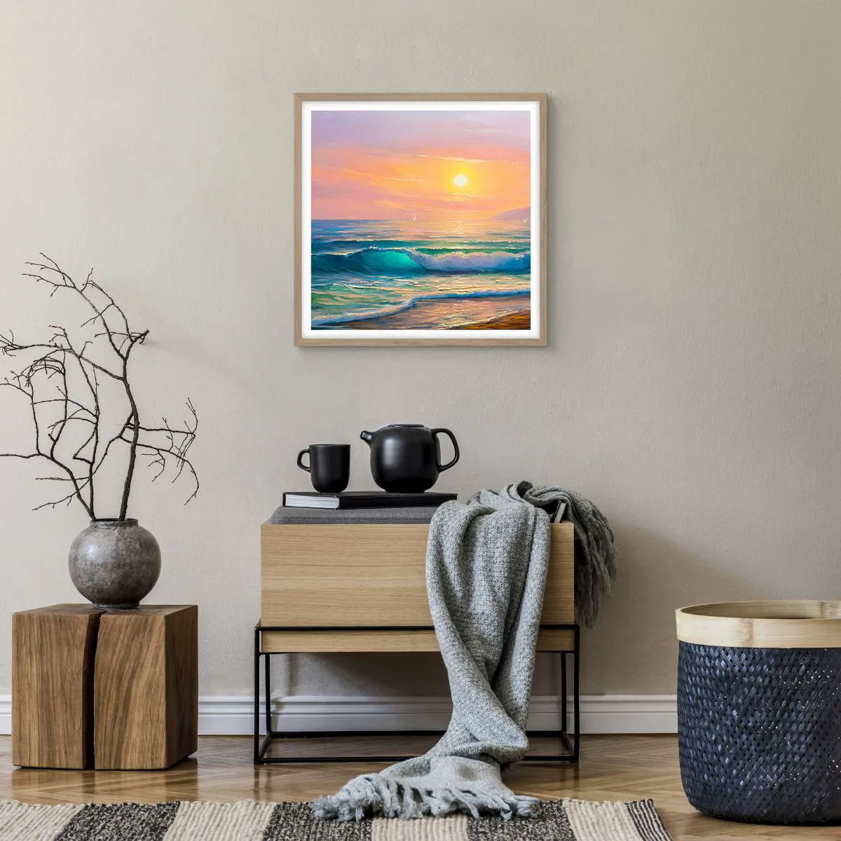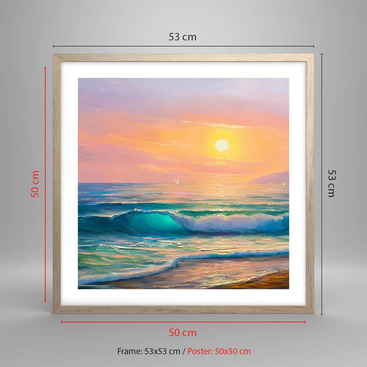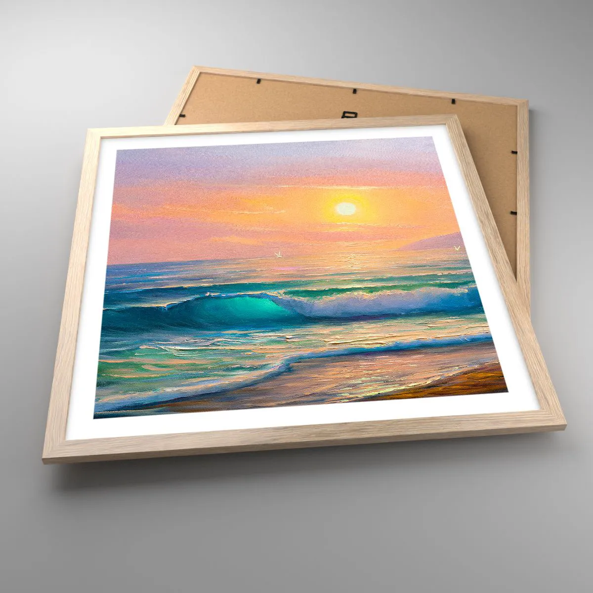 Affiche dans un chêne clair - Poster - Le chant turquoise des vagues - 50x50 cm