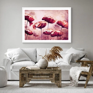 Affiche dans un cadre blanc - Poster - Pétale rouge et blanc - 61x91 cm