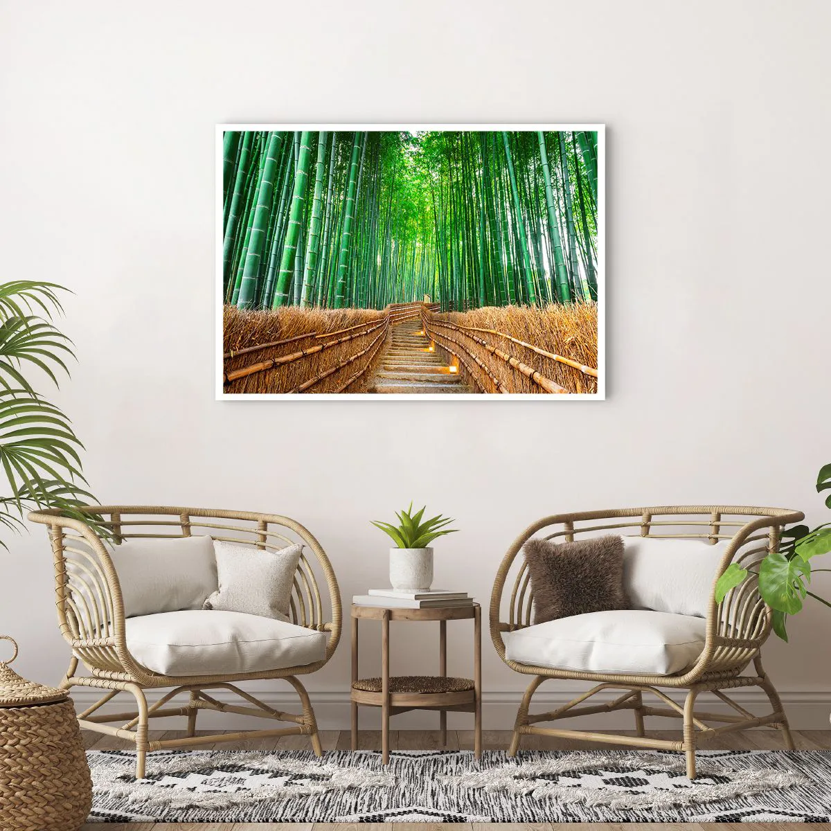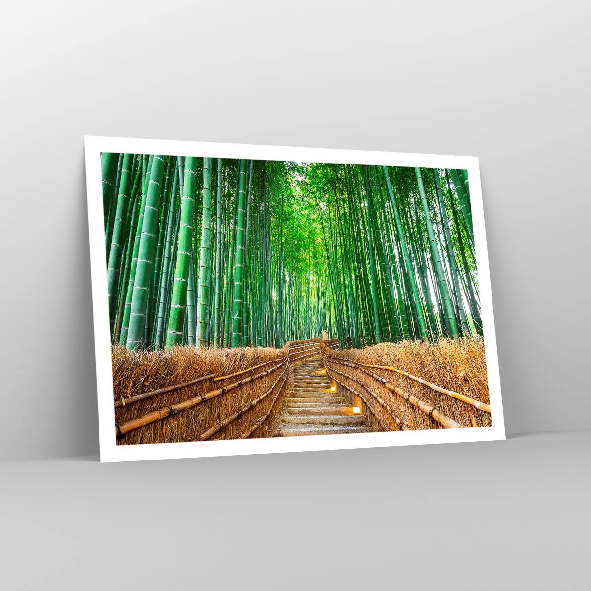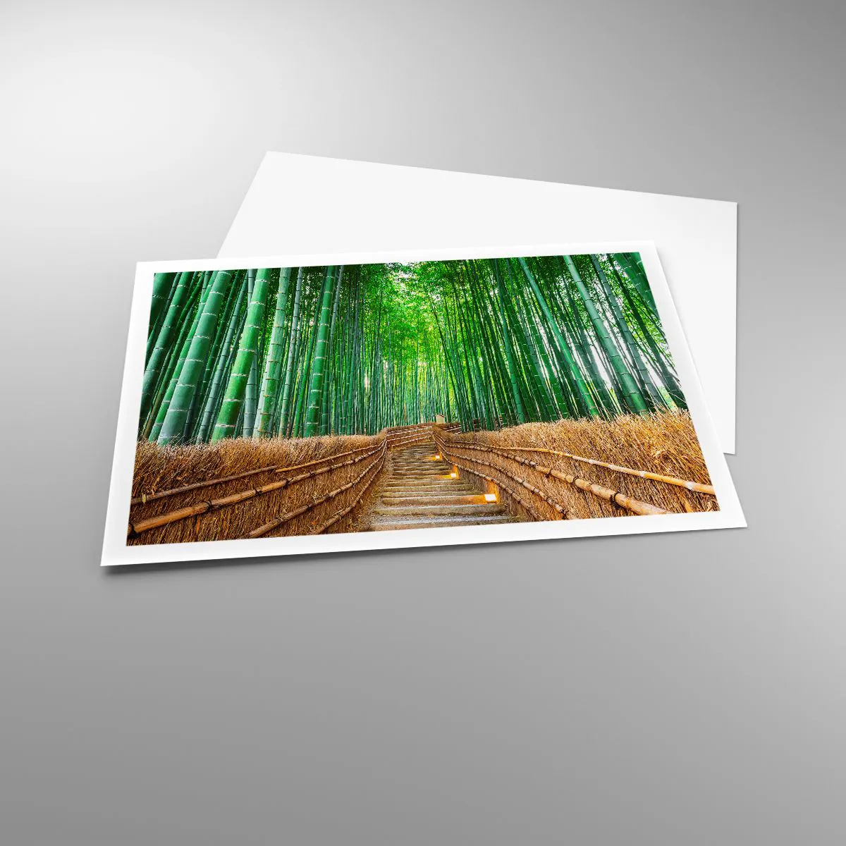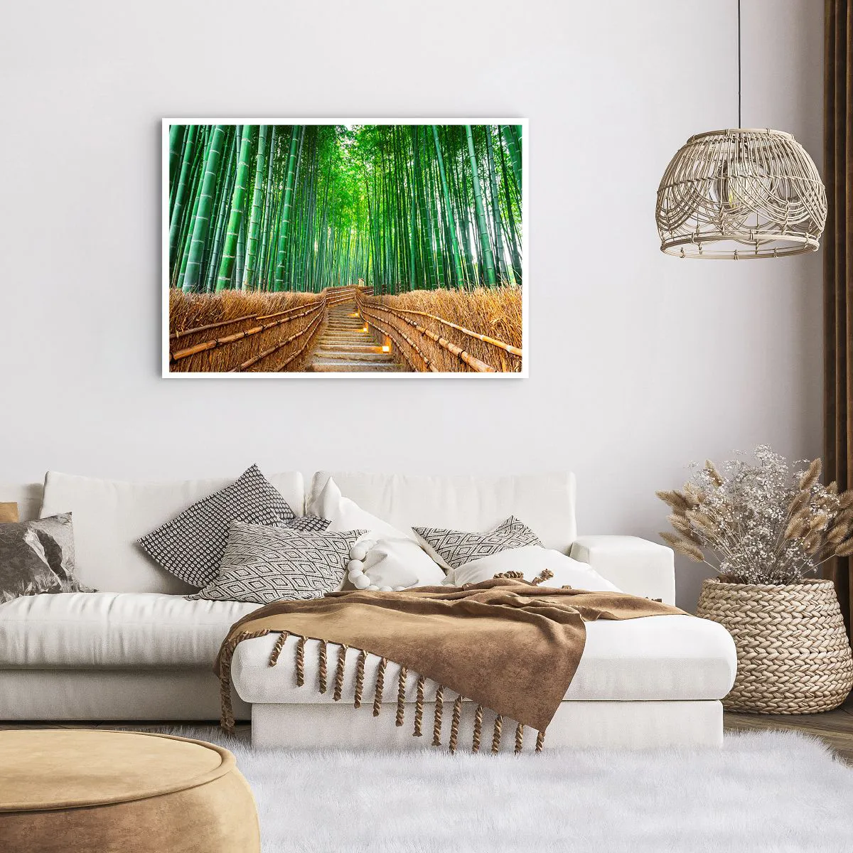 Affiche - Poster - Un chemin dans une dense forêt de bambous - 100x70cm - L'essence de la nature asiatique - Décoration murale moderne pour le salon et la chambre ARTTOR