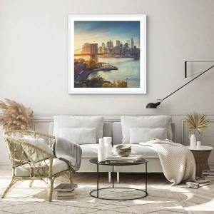 Affiche dans un cadre blanc - Poster - L'aube de la grande ville - 100x70 cm