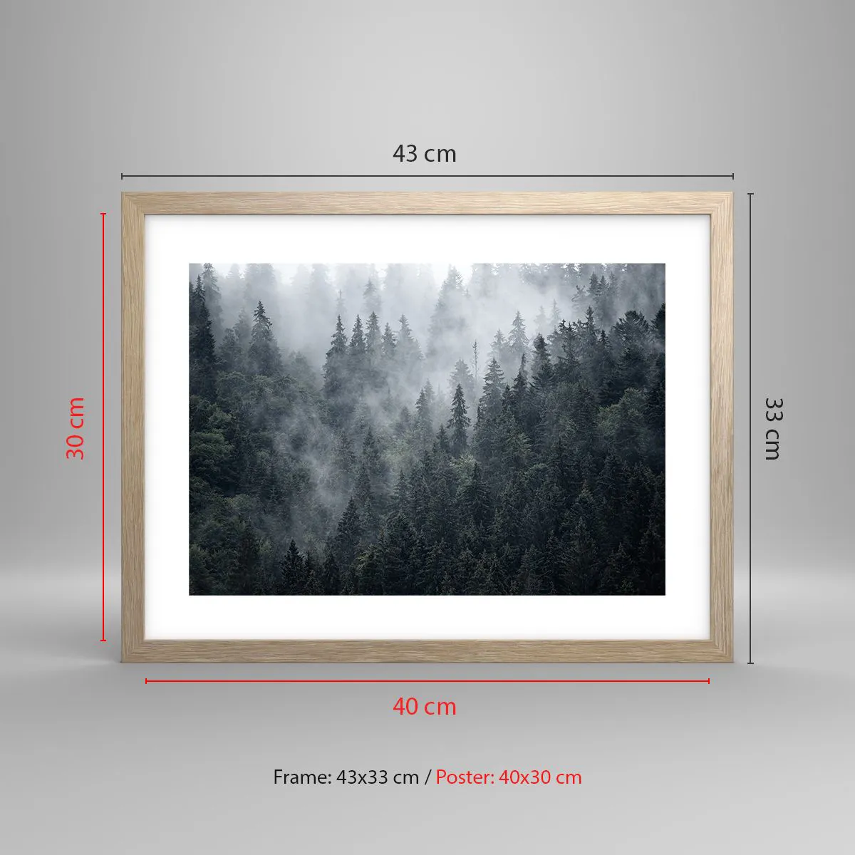 Affiche dans un chêne clair - Poster - Aube de la forêt - 40x30 cm