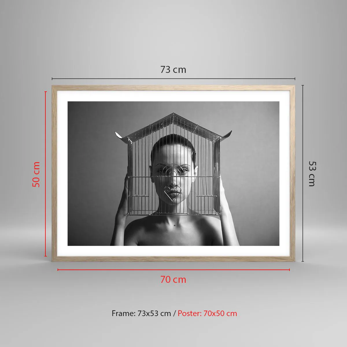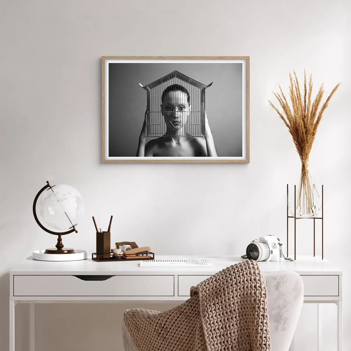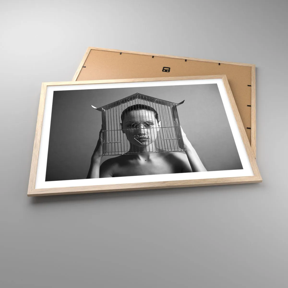 Affiche dans un chêne clair - Poster - Portrait un peu surréaliste - 70x50 cm