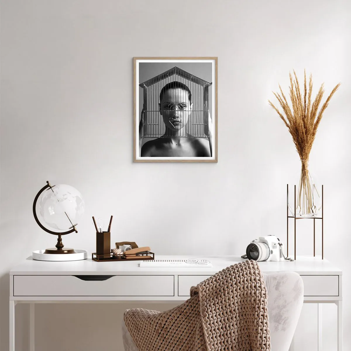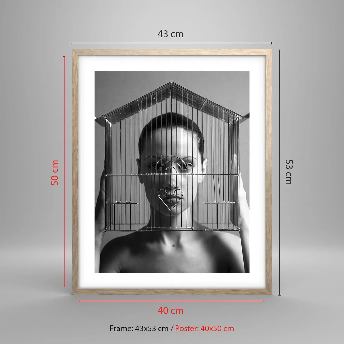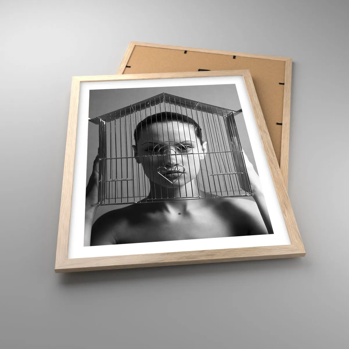 Affiche dans un chêne clair - Poster - Portrait un peu surréaliste - 40x50 cm