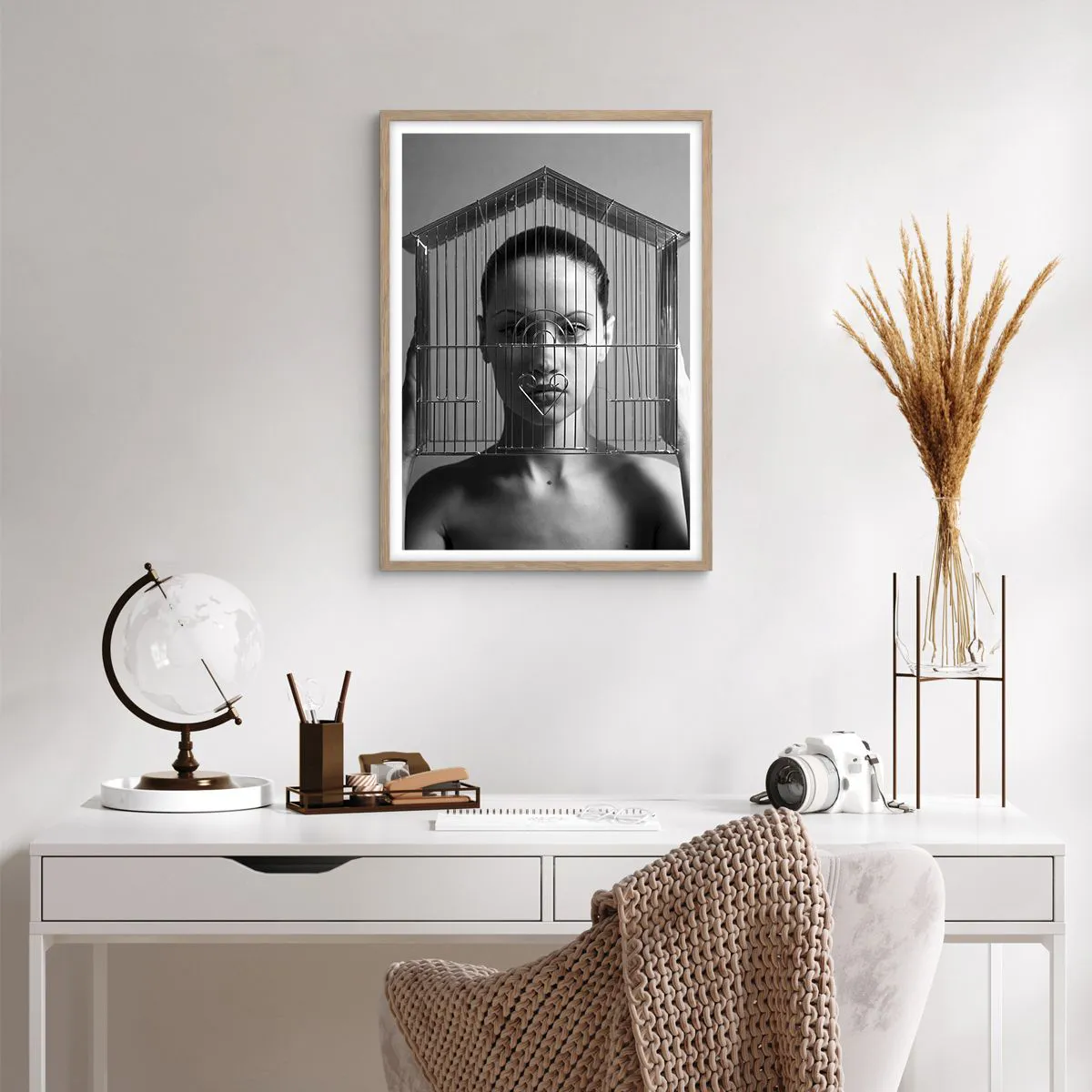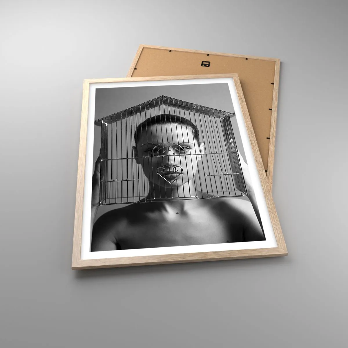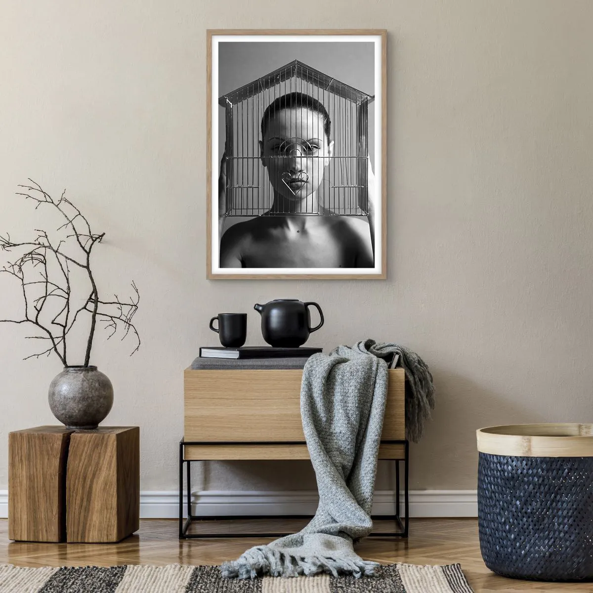 Affiche dans un chêne clair - Poster - Portrait un peu surréaliste - 50x70 cm