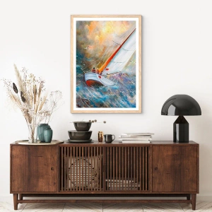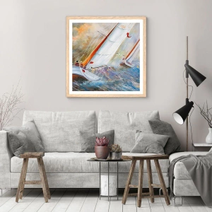 Affiche dans un chêne clair - Poster - Concourir sur les vagues - 40x40 cm